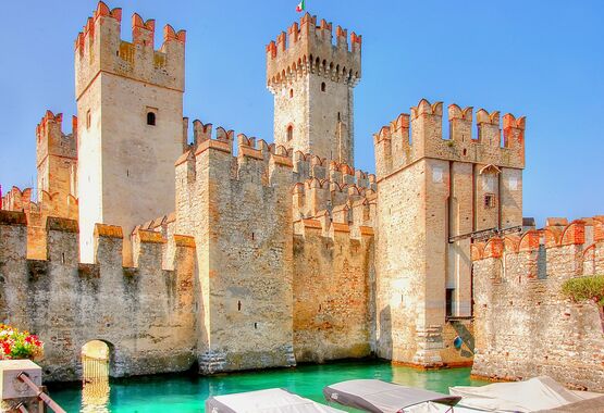 Continue to Peschiera del Garda, a UNESCO World Heritage fortress town where Venetian military architecture meets lakeside charm. Stroll along the ancient star-shaped fortifications and enjoy the peaceful canals that flow through this historically significant gateway to the lake.